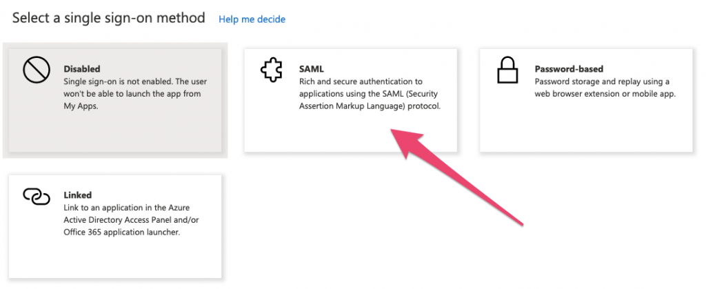 In the next set of options, select SAML: