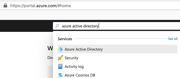 In the Azure portal, search for or navigate to ‘Azure Active Directory’: