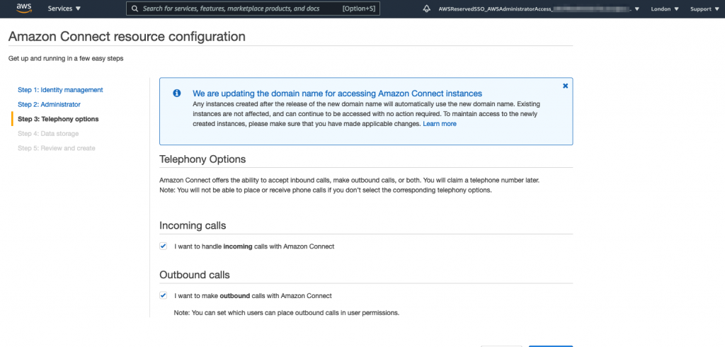 Now I need to decide if my Connect instance is going to handle incoming calls, outgoing calls or both, I’m going to select both: